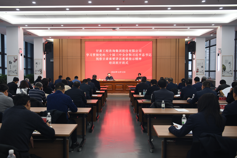 12月12日,甘肅工程咨詢集團(tuán)學(xué)習(xí)貫徹黨的二十屆三中全會(huì)和習(xí)近平總書記視察甘肅重要講話重要指示精神培訓(xùn)班開班。集團(tuán)公司黨委副書記、總經(jīng)理張佩峰出席開班式并講話,黨委副書記王春燕主持開班式。