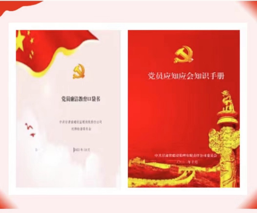 活動中,建設(shè)監(jiān)理公司黨委還為黨員精心制作了《黨員廉潔教育口袋書》及《黨員應(yīng)知應(yīng)會知識手冊》,篩選出黨紀(jì)黨規(guī)、黨建常識、名言警句、家風(fēng)家教、廉潔從業(yè)等各方面的常用知識,方便黨員學(xué)習(xí)使用。此次系列黨建活動不但拓展了黨員干部職工的學(xué)習(xí)途徑,豐富了黨建宣傳形式,更有助于進一步提升黨員的政治素質(zhì)和對黨建工作的認(rèn)知,凝聚廉政廉潔、風(fēng)清氣正的思想共識。