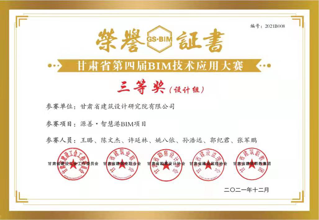 日前,甘肅省建設(shè)工會工作委員會、甘肅省建筑業(yè)聯(lián)合會、甘肅省勘察設(shè)計(jì)協(xié)會、甘肅省建設(shè)監(jiān)理協(xié)會、甘肅省建筑職教集團(tuán)聯(lián)合舉辦的“2021年甘肅省職工職業(yè)技能競賽暨甘肅省第四屆BIM技術(shù)應(yīng)用大賽”評選結(jié)果揭曉,甘肅省城鄉(xiāng)規(guī)劃設(shè)計(jì)研究院有限公司“BIM技術(shù)正向設(shè)計(jì)在蘭州中川國際機(jī)場三期擴(kuò)建工程航站區(qū)附屬用房工程項(xiàng)目中的應(yīng)用”獲得“BIM技術(shù)應(yīng)用作品征集”比賽設(shè)計(jì)組一等獎;甘肅省建筑設(shè)計(jì)研究院有限公司“甘肅省臨洮體育訓(xùn)練基地二期建設(shè)(滑冰館)項(xiàng)目BIM技術(shù)在總承包管理中的綜合應(yīng)用”獲得二等獎,“緣善智慧港BIM項(xiàng)目”獲得三等獎;甘肅省建設(shè)監(jiān)理有限責(zé)任公司李燕燕獲得“BIM技術(shù)技能比賽”三等獎。