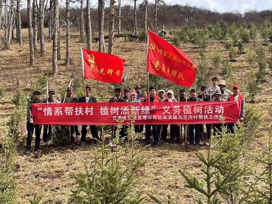 為積極響應(yīng)習(xí)近平總書記“全社會都做生態(tài)文明建設(shè)的實踐者、推動者,讓祖國天更藍、山更綠、水更清、生態(tài)環(huán)境更美好”的號召,以打造“五無甘南”,創(chuàng)建“十有家園”為目標,加快推進鄉(xiāng)村振興戰(zhàn)略實施,共建生態(tài)宜居宜業(yè)的美麗鄉(xiāng)村,近日,甘肅省交通工程建設(shè)監(jiān)理有限公司駐臨潭縣洮濱鎮(zhèn)馬旦溝村幫扶工作隊積極發(fā)揮自身職能,協(xié)同包村干部、村“兩委”成員、駐村黨員、義務(wù)志愿者及群眾代表等開展義務(wù)植樹活動。