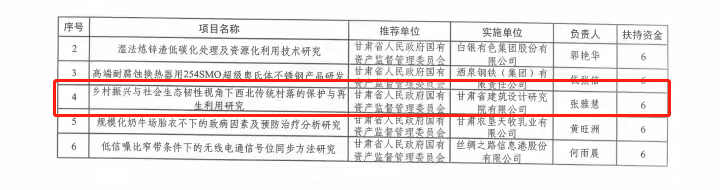 近期,省委組織部印發(fā)了《關(guān)于印發(fā)2023年度省級重點人才項目和隴原青年創(chuàng)新創(chuàng)業(yè)人才(團隊)項目入選名單的通知》(甘組通字〔2023〕20號),甘肅工程咨詢集團省建筑設(shè)計院張雅慧申報的《鄉(xiāng)村振興與社會生態(tài)韌性視角下西北傳統(tǒng)村落的保護與再生利用研究》入選個人項目名單,獲得6萬元經(jīng)費資助。