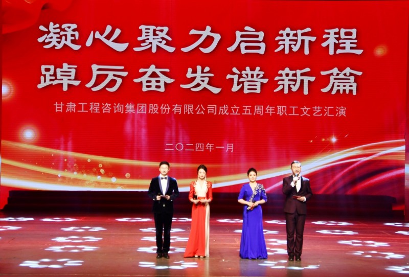 風(fēng)華正茂五年載,逐夢(mèng)星辰向未來(lái)。1月8日,甘肅工程咨詢集團(tuán)成立五周年“凝心聚力啟新程 踔厲奮發(fā)譜新篇”職工文藝匯演在黃河大劇院隆重舉行。甘肅電氣裝備集團(tuán)有限公司黨委書(shū)記、董事長(zhǎng)劉萬(wàn)祥,甘肅藥業(yè)投資集團(tuán)有限公司黨委書(shū)記、董事長(zhǎng)周榮,甘肅省水務(wù)投資集團(tuán)有限公司黨委書(shū)記、董事長(zhǎng)李建軍,甘肅科技投資集團(tuán)有限公司黨委委員、監(jiān)事會(huì)主席肖建勝,國(guó)泰君安證券甘肅分公司副總經(jīng)理廖光蔚;集團(tuán)公司原黨委書(shū)記、董事長(zhǎng)宋忠慶,原黨委委員、副總經(jīng)理梁建平、喬禎林;集團(tuán)公司黨委書(shū)記、董事長(zhǎng)馬明,黨委副書(shū)記、總經(jīng)理張佩峰,黨委委員、監(jiān)事會(huì)主席焦軍毅及其他領(lǐng)導(dǎo)班子全體成員一同觀看了演出。