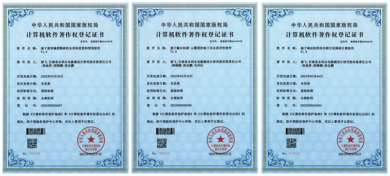 近日,由甘肅省水利水電勘測設(shè)計研究院有限公司自主研發(fā)的《基于響應(yīng)矩陣的井群開采降深計算軟件》《基于融合權(quán)重-云模型的地下水水質(zhì)評價軟件》《基于麥肯錫邏輯樹的水利科技資料管理軟件》等3項計算機(jī)軟件獲得著作權(quán)登記證書。