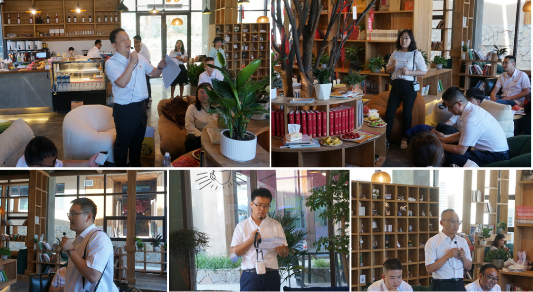 在棲云小鎮(zhèn)書吧開展的“一心永向黨,喜迎二十大”的交流研討會上,羅堯同志代表第五黨支部作主題發(fā)言。他首先對參加本次主題黨日活動的同志們表示歡迎和感謝,然后為大家深入講解并解讀了我省第十四次黨代會提出的“一核三帶”省域發(fā)展新藍(lán)圖和“四強(qiáng)”行動相關(guān)要點(diǎn),并倡議每一位規(guī)劃工作從業(yè)者應(yīng)當(dāng)加強(qiáng)政治學(xué)習(xí),提高政治站位,在全面把握全省重大政治任務(wù)的前提下,與時俱進(jìn),緊密聯(lián)系實(shí)際開展規(guī)劃設(shè)計工作,并著眼長遠(yuǎn)、聚焦重點(diǎn),充分發(fā)揮技術(shù)優(yōu)勢,助力全面推進(jìn)甘肅經(jīng)濟(jì)社會高質(zhì)量發(fā)展。黨委辦公室主任樊曉丹同志作了“高度重視黨建工作,推動黨建工作和業(yè)務(wù)工作深度融合”的主題發(fā)言。她首先肯定了第五黨支部一直以來在黨建工作中取得的成績,并鼓勵支部應(yīng)當(dāng)百尺竿頭更進(jìn)一步,積極打造黨建品牌,不斷提升基層黨建工作的引領(lǐng)力、號召力和吸引力。團(tuán)委書記劉斌同志以《回顧百年團(tuán)史,匯聚青春力量》為題,講授了一堂生動的黨課,帶領(lǐng)大家一起走進(jìn)百年團(tuán)史,追尋信仰之光,勇?lián)啻菏姑h廣大團(tuán)員應(yīng)當(dāng)緊跟黨走,擔(dān)時代之責(zé),做新征程的奮進(jìn)者、開拓者和奉獻(xiàn)者,傳遞青春力量,綻放青春芳華,用青春和熱血書寫新時代壯麗篇章。其他黨員及入黨積極分子也從自身學(xué)習(xí)和工作實(shí)際出發(fā),分別就基層黨建、政治理論學(xué)習(xí)、黨員先鋒模范作用發(fā)揮等方面交流了各自的所思所感。