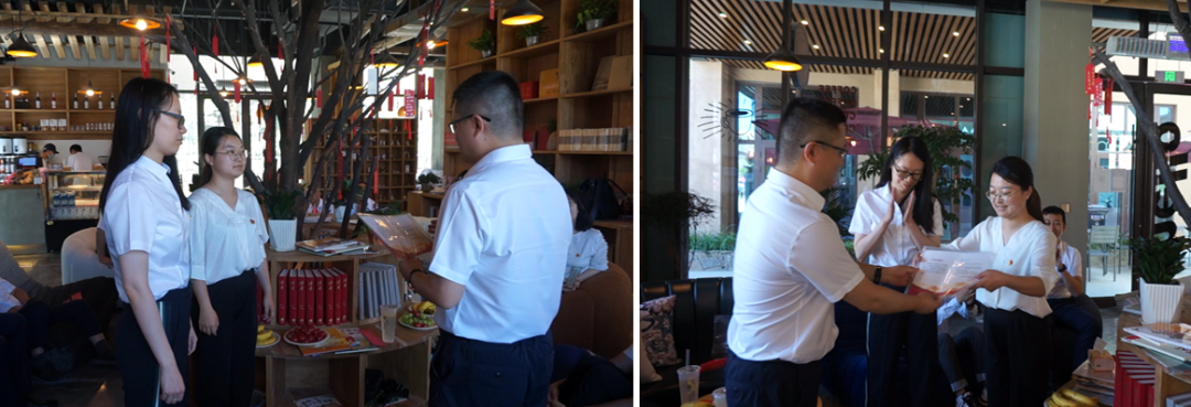 活動舉辦當(dāng)天,恰逢黨員袁田同志和仲亞男同志的“政治生日”,為了讓黨員同志們切實(shí)感受到來自黨組織的溫暖與關(guān)懷,引導(dǎo)廣大黨員進(jìn)一步強(qiáng)化身份意識、宗旨意識和責(zé)任意識,交流會現(xiàn)場還為兩位黨員同志舉辦了一場特別的“政治生日會”,為她們送上一張?zhí)刂频摹吧召R卡”、一枚新黨徽、一本新黨章,以極富儀式感的活動形式,提醒激勵黨員同志們要時刻謹(jǐn)記黨員職責(zé),不忘初心、牢記使命,在工作和生活中時刻以黨員標(biāo)準(zhǔn)嚴(yán)格要求自己,切實(shí)發(fā)揮黨員干部的先鋒模范作用。