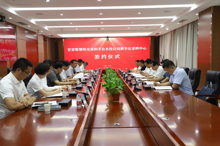 7月6日下午,甘肅省招標咨詢集團有限責任公司與甘肅省水務投資有限責任公司舉行甘肅智慧陽光采購平臺水投公司數(shù)字化采購中心簽約儀式。甘肅水務集團黨委書記、董事長徐崇鋒,招標咨詢集團黨委書記、董事長牛茺出席簽約儀式并致辭。甘肅水務集團黨委副書記、董事、總經(jīng)理汪棟與招標咨詢集團黨委副書記、總經(jīng)理孫有仙代表雙方簽約。甘肅水務集團黨委委員、副總經(jīng)理王玉和,招標咨詢集團黨委副書記、監(jiān)事會主席、工會主席巨有成,黨委委員、紀委書記鄭志峰,黨委委員、副總經(jīng)理李蘭軍,甘肅水務集團及招標咨詢集團相關(guān)部門負責人參加簽約儀式。