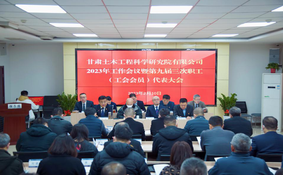 2月10日,甘肅土木工程科學(xué)研究院有限公司召開2023年工作會議暨第九屆三次職工(工會會員)代表大會,集團(tuán)公司黨委委員、副總經(jīng)理梁建平到會指導(dǎo)。土木工程院董事長曹慶作了題為《蓄力增勢、提質(zhì)增效,主動作為、勇毅前行,奮力跑出高質(zhì)量發(fā)展的加速度》的工作報(bào)告,黨委副書記、監(jiān)事會主席、工會主席張磊作了題為《勇毅前行創(chuàng)佳績,踔厲奮發(fā)譜新篇,以黨的二十大精神推動工會工作高質(zhì)量發(fā)展》的工會工作報(bào)告、工會經(jīng)費(fèi)收支情況報(bào)告及2022年度財(cái)務(wù)工作報(bào)告。會上對2022年度先進(jìn)集體、優(yōu)秀管理者、先進(jìn)工作者及優(yōu)秀科技工作者進(jìn)行了表彰。職工代表、列席代表等64人參加。