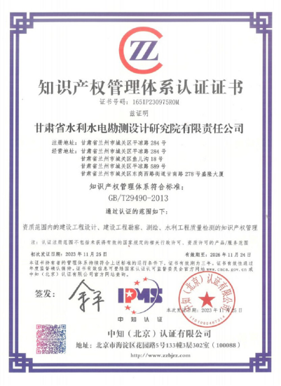 近日,省水電設計院順利通過《企業(yè)知識產權管理規(guī)范》(國家標準GB/T 29490-2013)的認證評審工作,取得《知識產權管理體系認證證書》,標志著在知識產權創(chuàng)造、運用、管理和保護方面邁上新臺階。