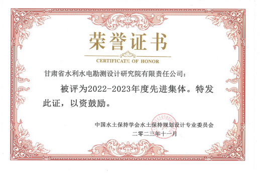 11月5日至7日,中國水土保持學會2023年年會暨學術(shù)研討會在蘭州召開。省水電設計院榮獲中國水土保持學會2022-2023年度“先進集體”稱號,水保設計咨詢公司王向明榮獲“先進個人”稱號。1篇論文獲優(yōu)秀論文獎。