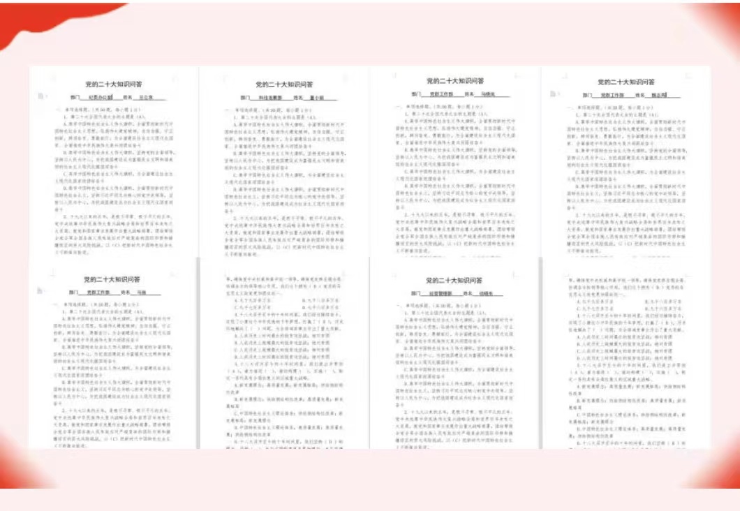 充分利用網(wǎng)絡(luò)平臺(tái)和宣傳櫥窗,開設(shè)黨的二十大精神學(xué)習(xí)專欄,制作宣傳展板,進(jìn)行電子屏滾動(dòng)展播,并在企業(yè)網(wǎng)站和微信公眾號(hào)平臺(tái),運(yùn)用圖片新聞、短視頻等形式,對(duì)外發(fā)布黨的二十大學(xué)習(xí)內(nèi)容、學(xué)習(xí)情況,持續(xù)營(yíng)造濃厚的學(xué)習(xí)氛圍。