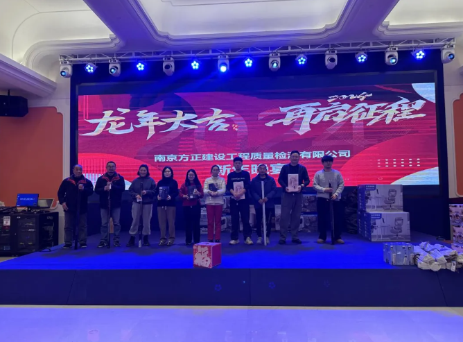 在2024春節(jié)到來前夕,南京方正建設(shè)工程質(zhì)量檢測(cè)有限公司于2024年2月6日下午在公司二樓會(huì)議室召開年終總結(jié)會(huì)議,會(huì)上各部門進(jìn)行年終匯報(bào),并對(duì)優(yōu)秀員工、積極份子進(jìn)行表彰。會(huì)后在南京白金漢爵大酒店召開了“迎新春,再啟程”的年度慶祝晚會(huì)——匯總過往一年的收獲,期待明年的再啟征程。